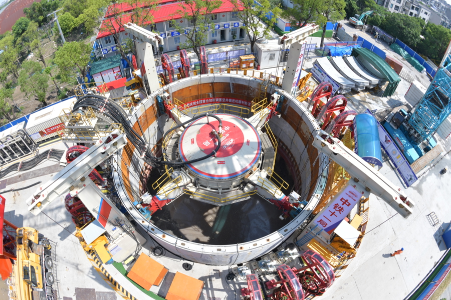 该工程竖井于今年6月正式进行掘进施工,施工过程中曾面临主体开挖断面大、管片拼装精度高、井筒垂直度控制难等三重挑战。对此,建设团队遵循技术先行原则,依托BIM三维模型对掘进全过程进行可视化模拟,将管片拼装误差控制在±2毫米范围内。同时,由中铁十一局联合铁建重工研制的国产掘进机搭载有动态纠偏机制,可确保成型竖井垂直度符合规范要求。目前,项目已完成主体掘进工作,正在进行底板及内部结构施工,项目整体预计于2026年6月投入运营。
