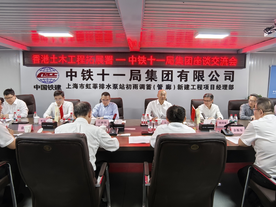 10月13日,香港特别行政区政府发展局土木工程拓展署署长方学诚带队到中铁十一局上海虹莘初雨调蓄池管廊调研考察。此次调研旨在深入了解上海在城市排水防涝、雨水管理等方面的经验,同时围绕上海市大型调蓄设施规划、建设与运营等方面的创新实践与先进技术进行学习研讨。